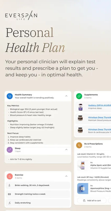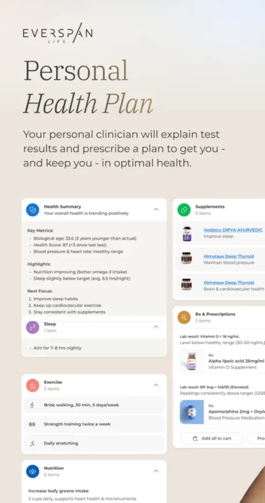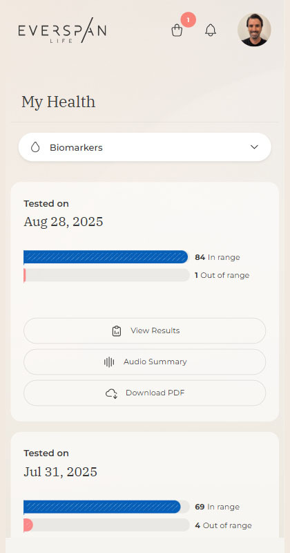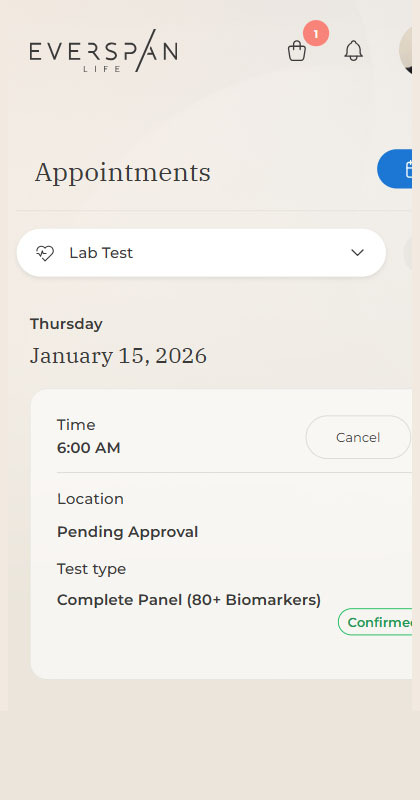 EverSpan Life is a concierge style longevity and performance health service that combines advanced biomarker testing with 1:1 expert guidance to give you a clear, personalized roadmap to optimal health.